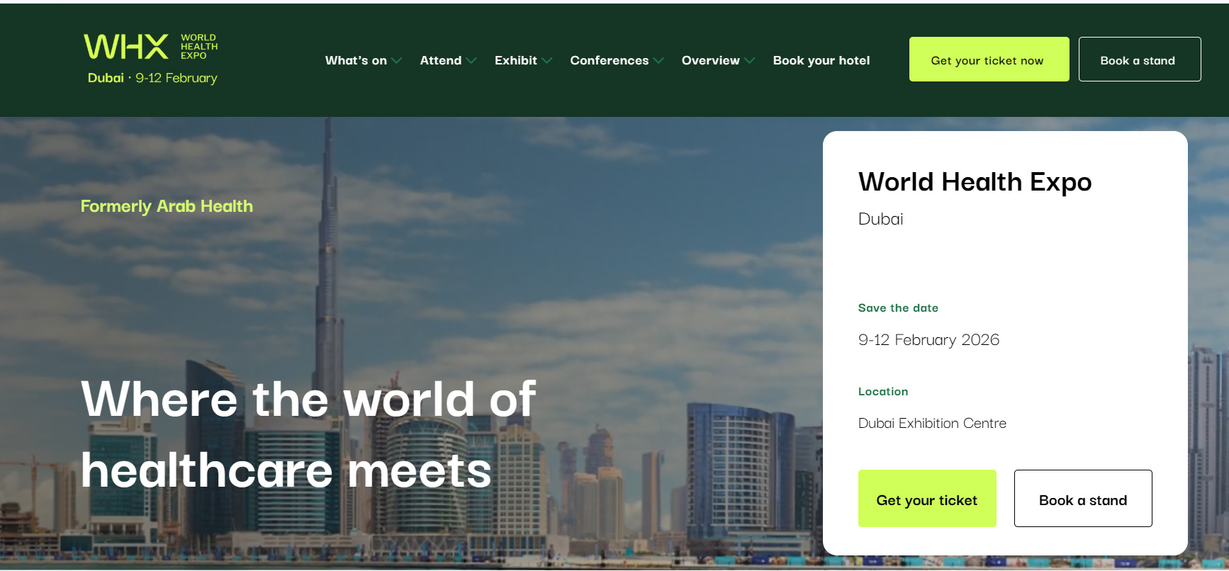 WHX Dubai (World Health Expo, Dubai) 9-12 February 2026 Dubai Exhibition Centre Hall:S7 Booth No.:E92